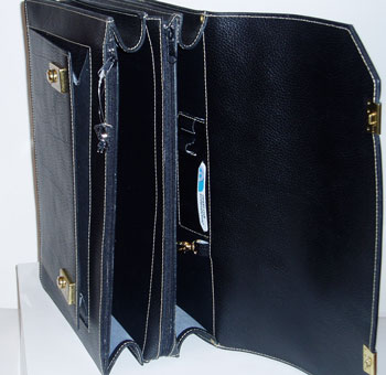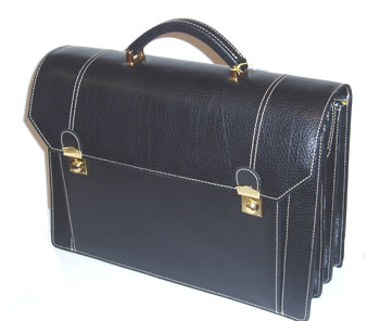 413 PO Façon sellier 41 cm · 3 Soufflets Poche devant Poche arrière Très grande contenance 2 Serrure luxe rivée à Clef Pontets larges
