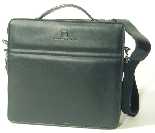 Petit sac Ordinateur en cuir pleine fleur Un grand compartiment Bandoulière Deux poches diskettes et porte stylos Diverses fixations et pochettes intérieures