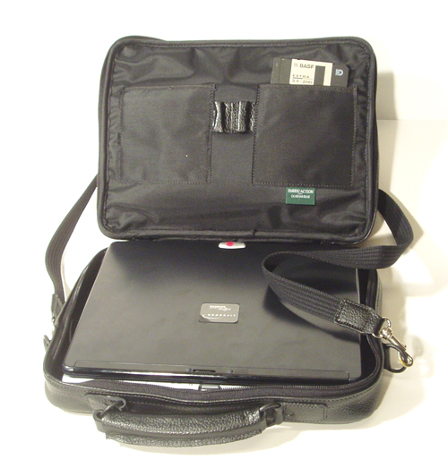 Petit sac Ordinateur en cuir pleine fleur Un grand compartiment Bandoulière Deux poches diskettes et porte stylos Une grande poche frontale pour cables